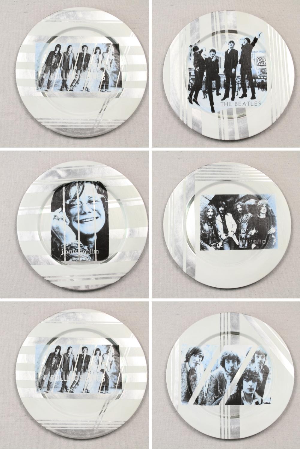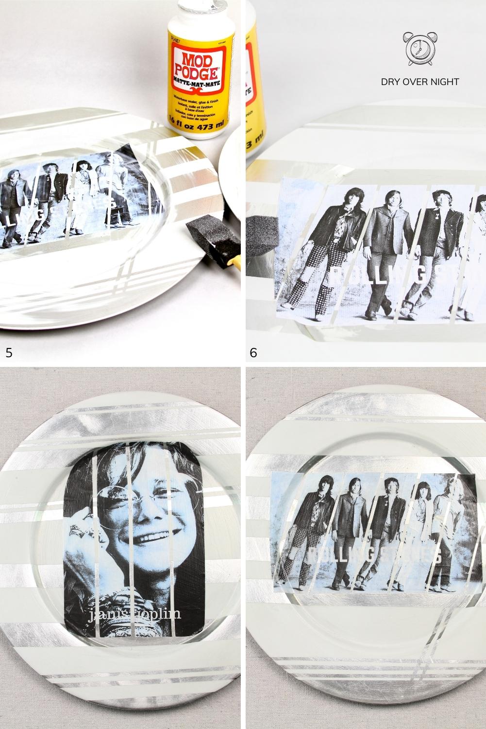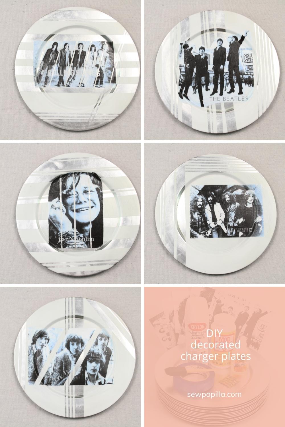 You can decorate the entire plate to make an image collage if you desire, or choose to keep it simple with one photo for each charger plate, as I did with my favorite bands.