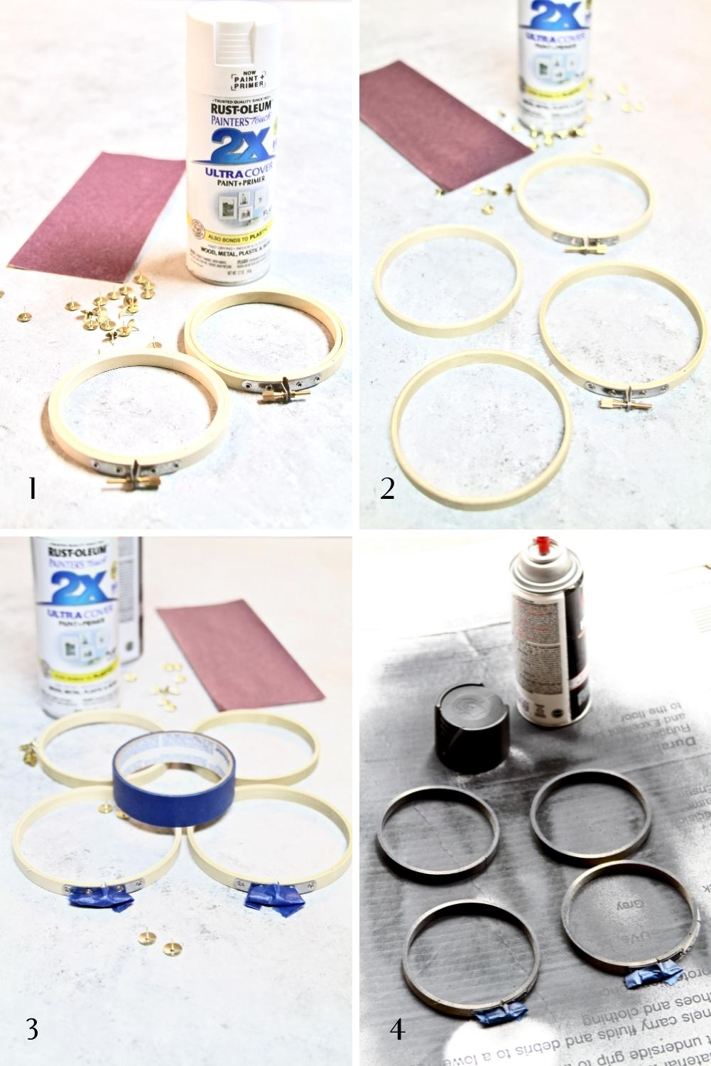 STEP 4: *Spray paint all four hoops black, set aside to let it dry.