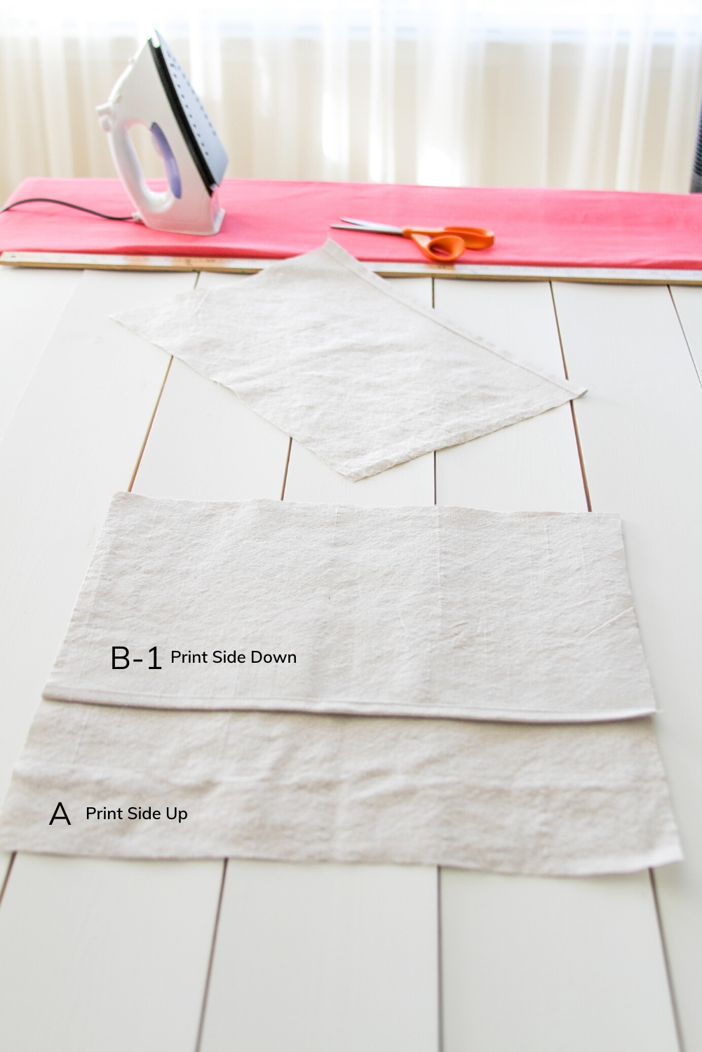 If you are using a printed fabric for “A, “place the material with the print-side up.